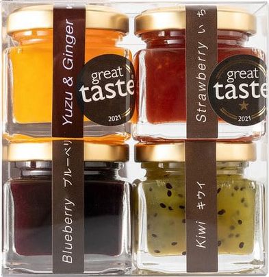 | 内容量 | ミニ瓶(55g)4個のセット ・ゆず&生姜 ・いちごジャム ・ブルーベリージャム ・キウイジャム |